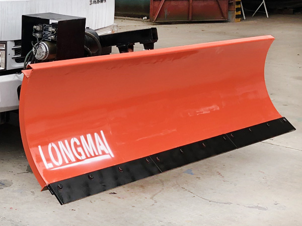 除雪铲具有一定切削角的铲刃随着雪铲的前进能连续将积雪剥离路面并沿着特殊曲面向斜上方运动, 后以一定速度抛出,除雪铲的升降依靠升降油缸来完成,摆动机构使铲刃与路面充分接触,当路面发生高度变化时,除雪铲自动实现升降,确保铲刃不会出现切削力过大损坏铲刃和破坏路面,也不会离开路面铲不到雪,当遇到障碍物时,有自动翻转和铲刃自动复位功能,保证除雪工作顺利进行。